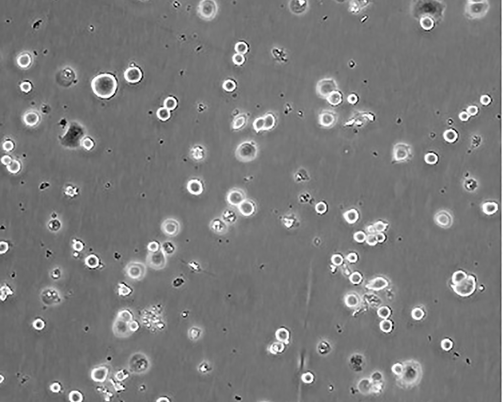:待細(xì)胞生長(zhǎng)狀態(tài)良好時(shí),可進(jìn)行細(xì)胞凍存。下面T25瓶為例;1.細(xì)胞凍存時(shí),棄去培養(yǎng)基后,PBS清洗瓶底1-2次后加入1ml胰酶,細(xì)胞變圓脫落后,加入2ml完全培養(yǎng)基終止消化,可使用血球計(jì)數(shù)板計(jì)數(shù)。2.1000RPM離心5分鐘去掉上清。用血清重懸浮,加DMSO至最終濃度為10%。加入DMSO后迅速混勻,按每1ml的數(shù)量分配到凍存管中,注意凍存管做好標(biāo)識(shí)。本公司按每個(gè)凍存管細(xì)胞數(shù)目大于1X106個(gè)細(xì)胞凍存。3.將凍存管置于程序降溫盒中,放入-80度冰箱,至少2個(gè)小時(shí)以后轉(zhuǎn)入液氮灌儲(chǔ)存。記錄凍存管位置以便下次拿取。 |
