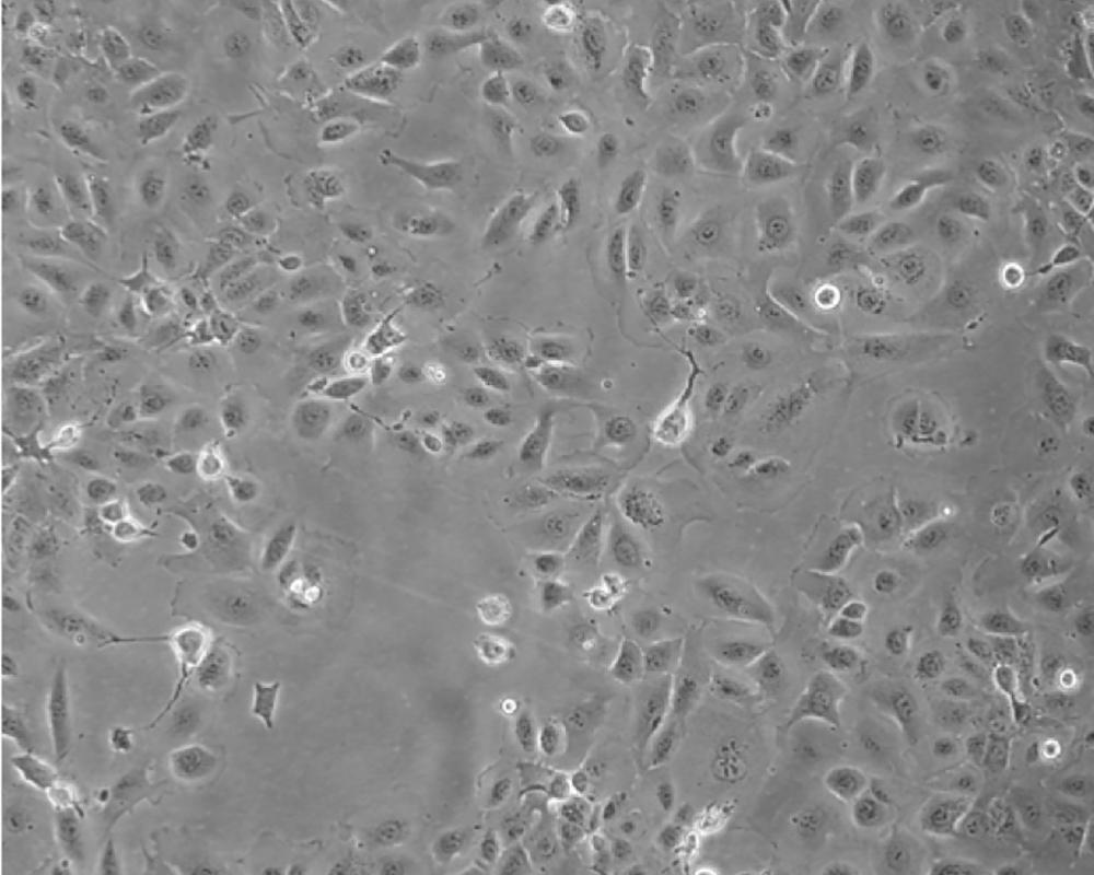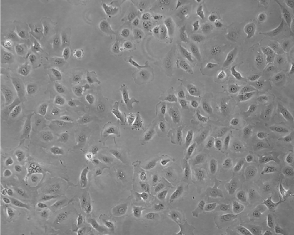 DU145是從一位有3年淋巴細(xì)胞白血病史的前列腺癌患者的腦部轉(zhuǎn)移灶中建立的。該細(xì)胞系未檢測(cè)到激素敏感性,酸性磷酸酶陽(yáng)性,單個(gè)的細(xì)胞可在軟瓊脂中形成集落。對(duì)此細(xì)胞和原始腫瘤的亞顯微結(jié)構(gòu)分析可見(jiàn)微絨毛、微絲、細(xì)胞橋粒、線粒體、發(fā)達(dá)的高爾基體和異質(zhì)溶酶體。該細(xì)胞不表達(dá)前列腺抗原。 |